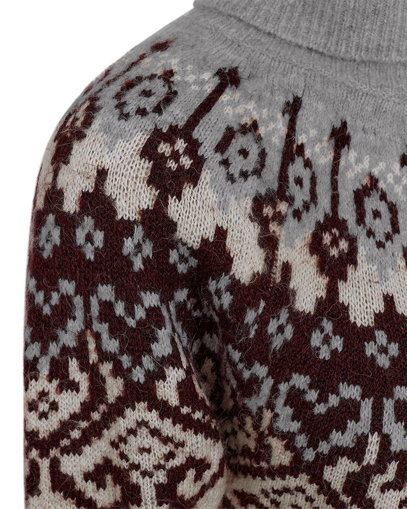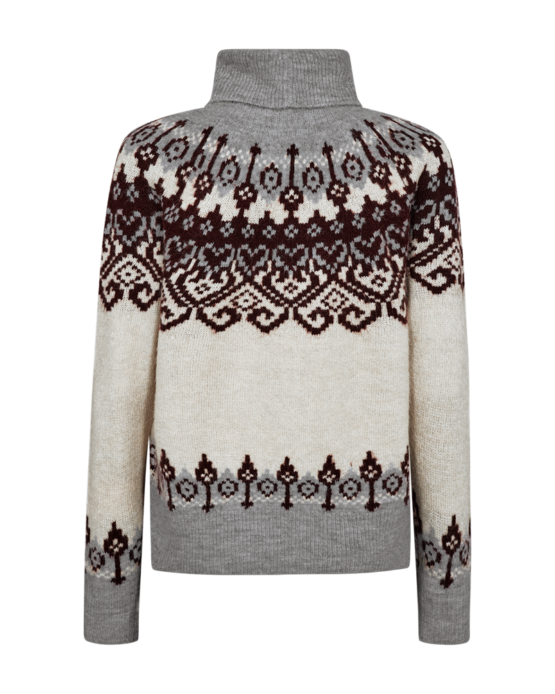 FREEQUENT PULLOVER MERLA JACQUARD HIGH NECK moonbeam mel w. med grey mel.