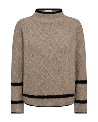 FREEQUENT PULLOVER HIRO CABLE STRIPE PATTERN desert taupe mel. w. black