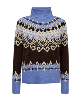 FREEQUENT PULLOVER MERLA JACQUARD HIGH NECK coffee bean mel. w. wedgewood mel.