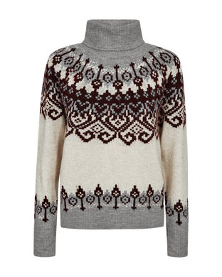 FREEQUENT PULLOVER MERLA JACQUARD HIGH NECK moonbeam mel w. med grey mel.