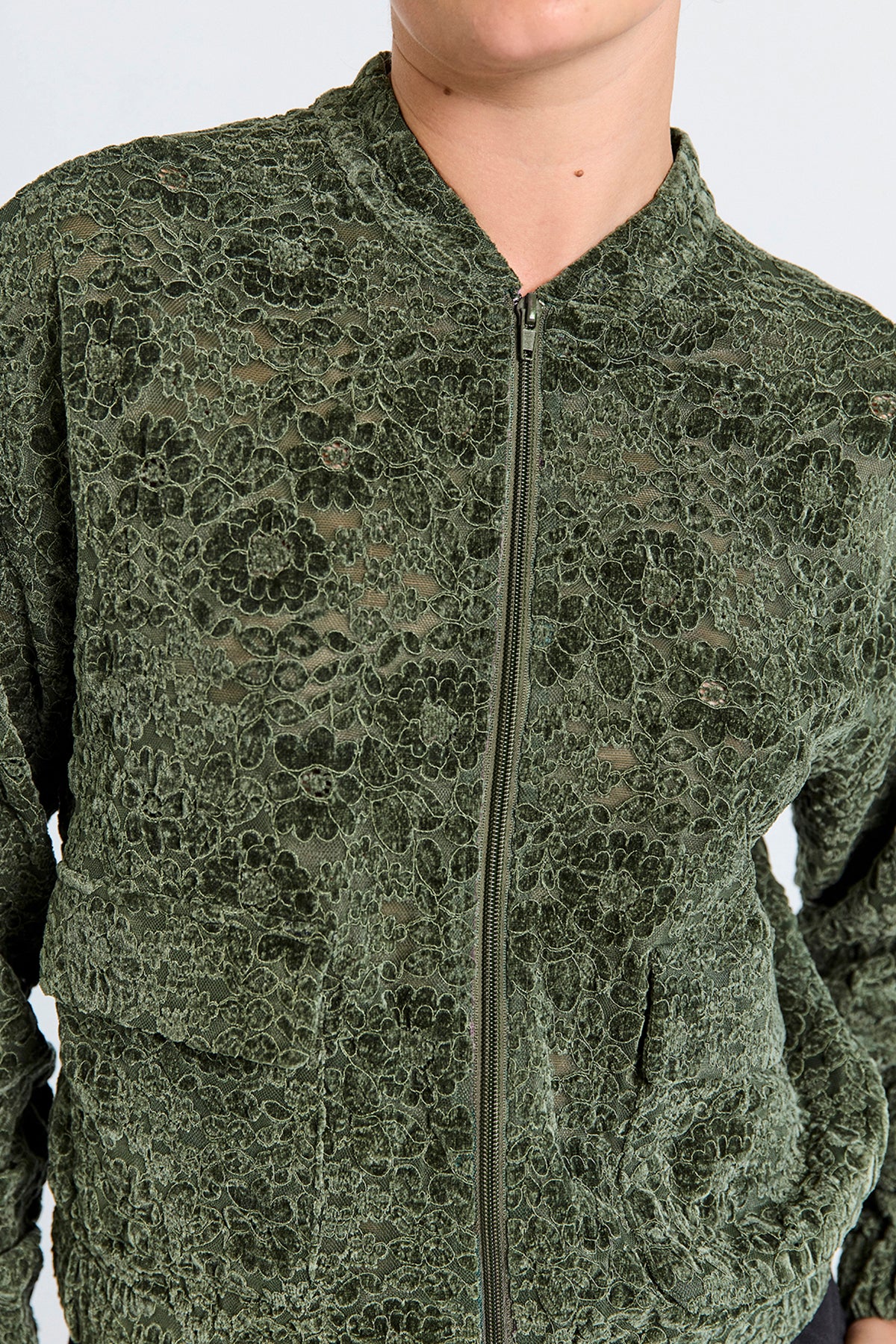 FREEQUENT JACKET GRY VELVET LACE kombu green